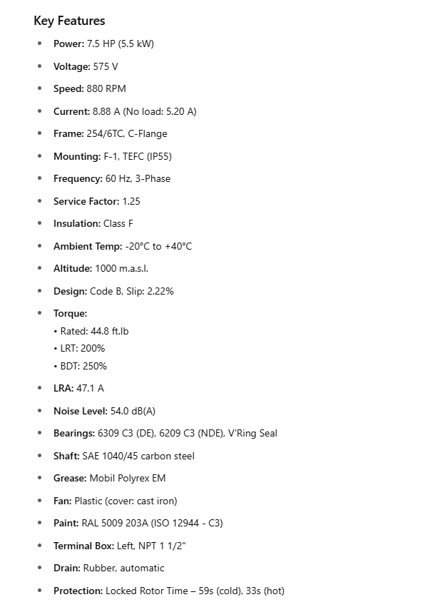 CT007508NPW22, W22 NEMA Premium Efficiency 7.5Hp 880 RPM 8P 254/6TC 3Ph 575 V 60 Hz IC411 - TEFC - Foot-mounted