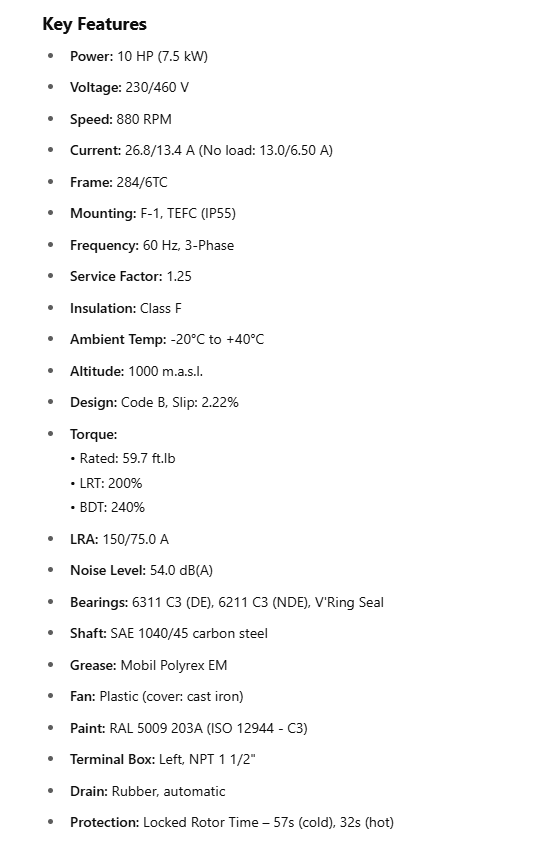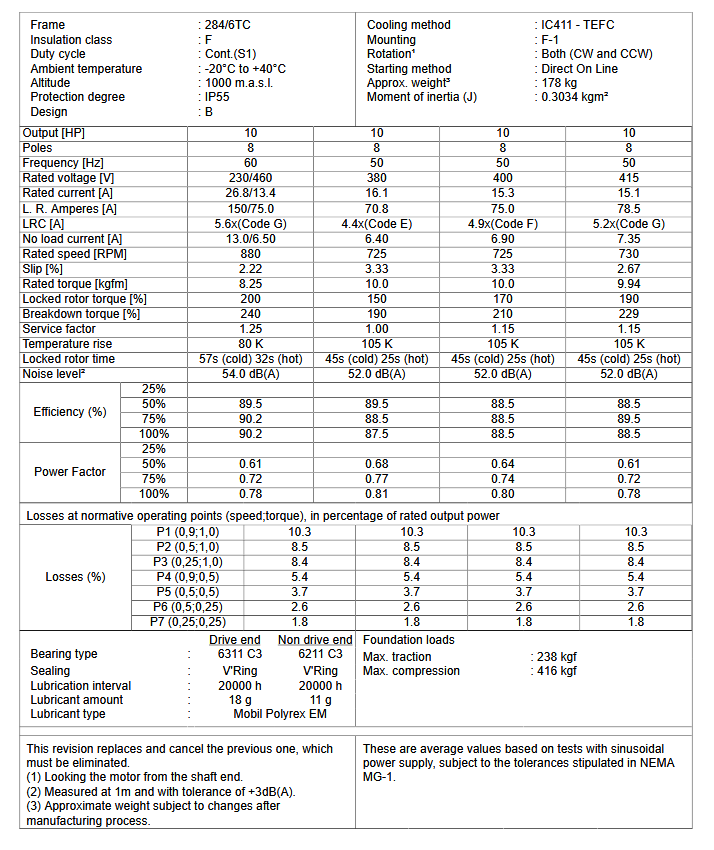 CT010408NPW22, W22 NEMA Premium Efficiency 10Hp 880 RPM 8P 284/6TC 3Ph 230/460//380 V 60//50 Hz IC411 - TEFC - Foot-mounted