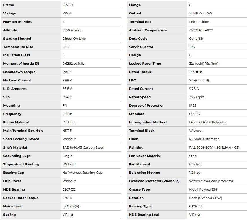 CT010502NPW22,  W22 NEMA Premium Efficiency 10Hp 3530 RPM 2P 213/5TC 3Ph 575 V 60 Hz IC411 - TEFC - Foot-mounted