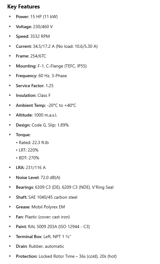 • Bearings: 6309 C3 (DE), 6209 C3 (NDE), V'Ring Seal