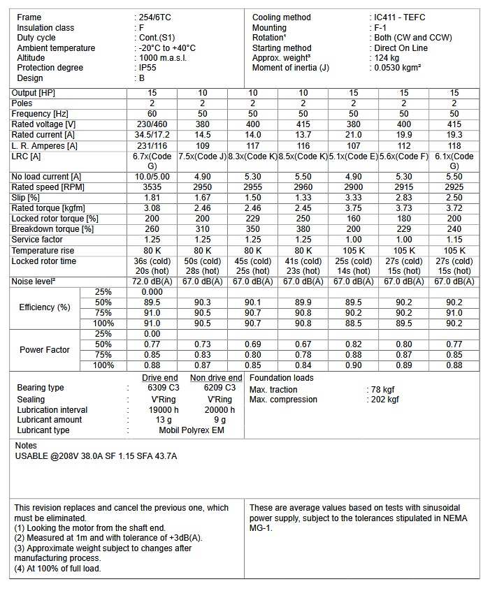 CT015402NPW22,  W22 NEMA Premium Efficiency 15Hp 3532 RPM 2P 254/6TC 3Ph 230/460//380 V 60//50 Hz IC411 - TEFC - Foot-mounted