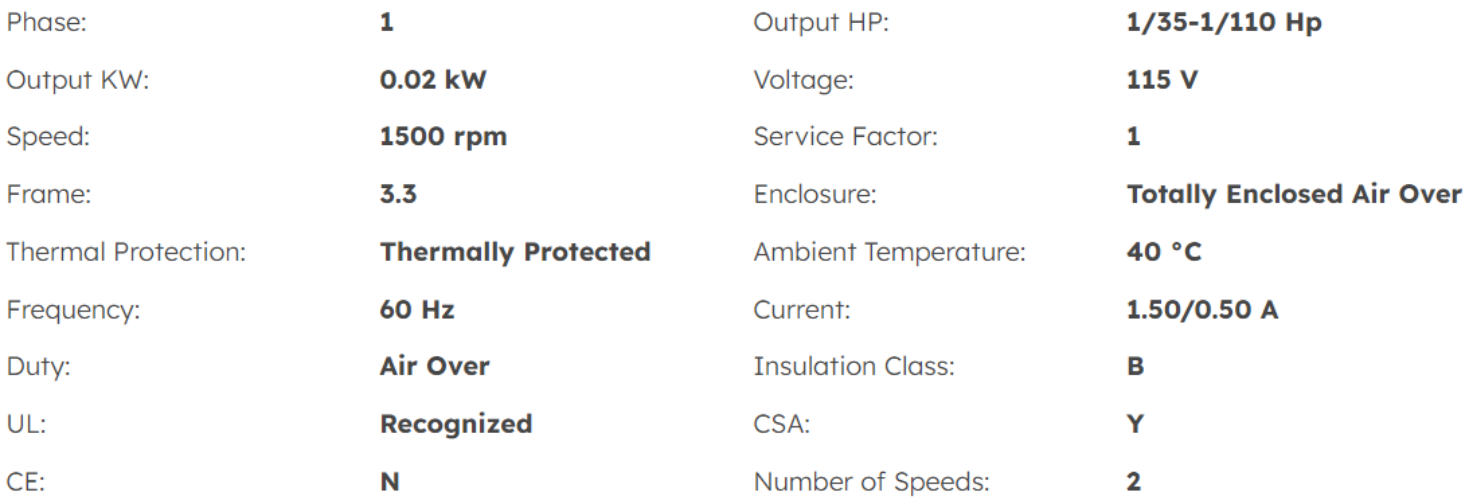 Output HP 1/35-1/110 Hp