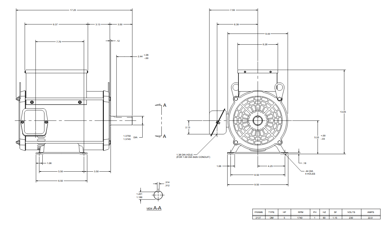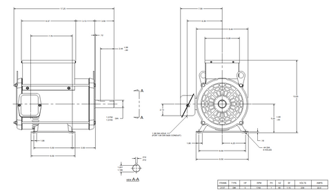 D5C2K21, 5Hp, 1740 RPM, 230V, ODP, 213T General Purpose Capacitor Start RIGID BASE NO OVERLOAD 1.15SF