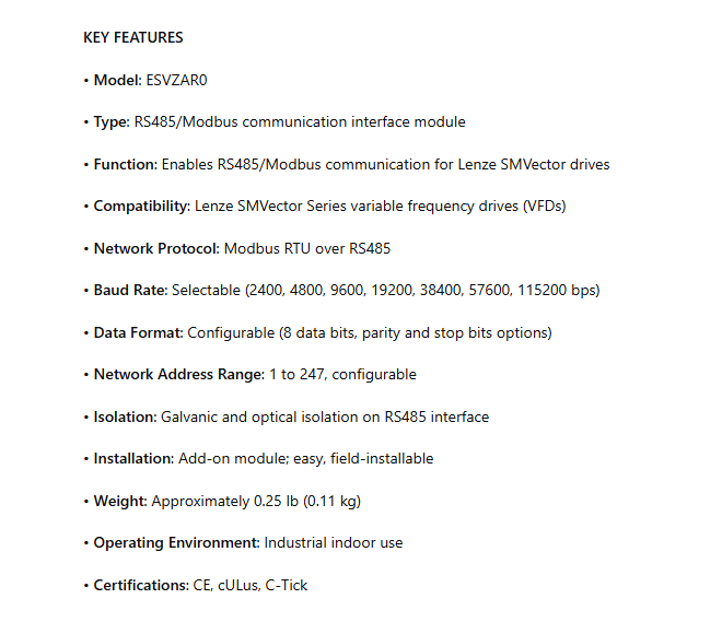 • Compatibility: Lenze SMVector Series variable frequency drives (VFDs)
