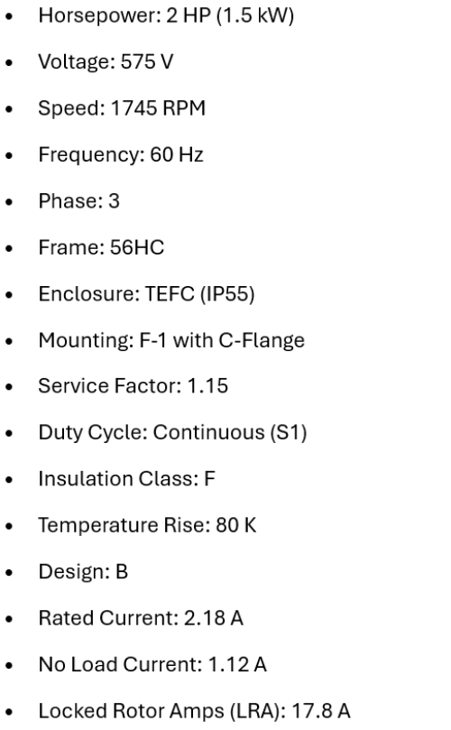 FC002504W01DOE, Weg, 2Hp, 1745 Rpm, 575 Volts, Frame: 56HC, Tefc,