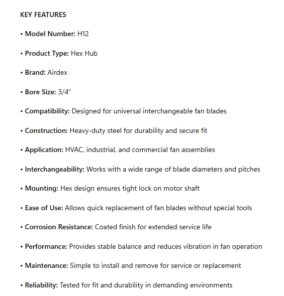 H12, Hex Hub For Universal Interchangeable Fan Blades, 3/4" Bore, Keyway Slot