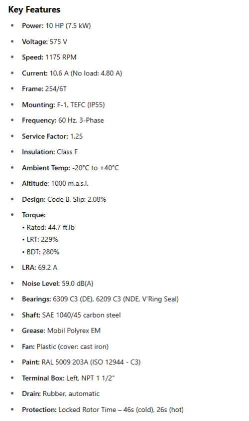 Bearings: 6309 C3 (DE), 6209 C3 (NDE, V’Ring Seal)