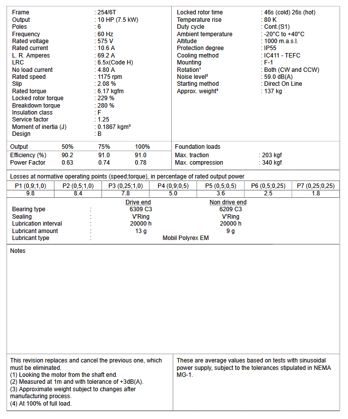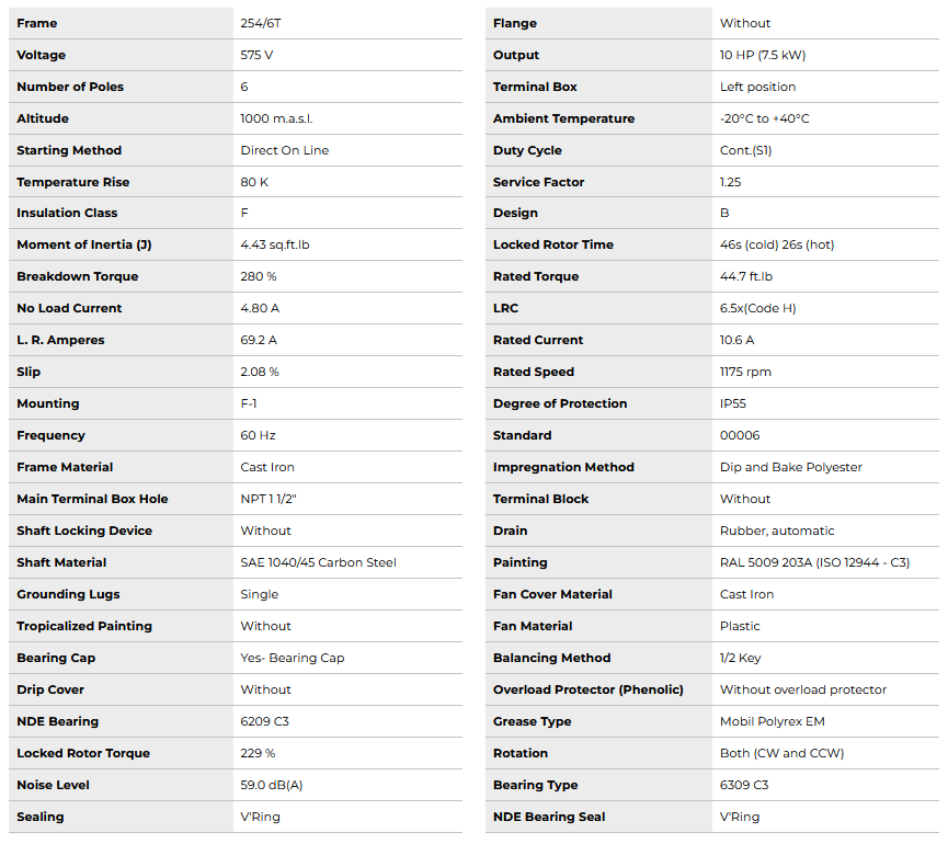 HT010506NPW22, W22 NEMA Premium Efficiency 10Hp 1175 RPM 6P 254/6T 3Ph 575 V 60 Hz IC411 - TEFC - Foot-mounted