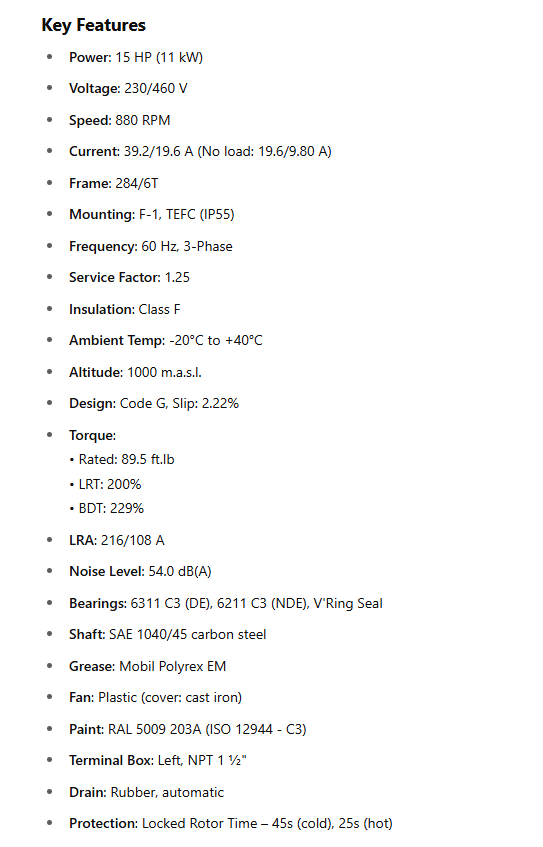 Frequency: 60 Hz, 3-Phase