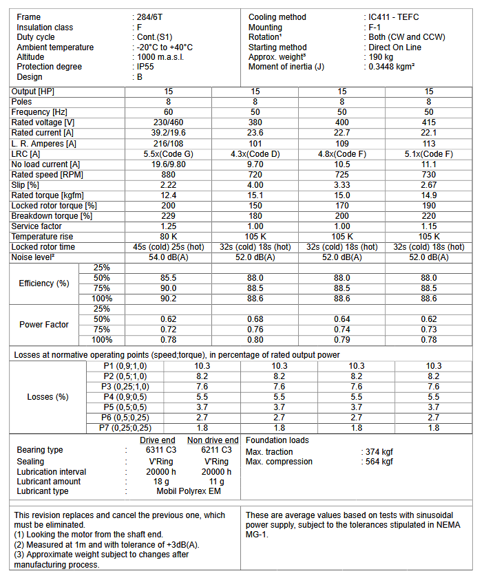 HT015408NPW22, W22 NEMA Premium Efficiency 15Hp 880 RPM 8P 284/6T 3Ph 230/460//380 V 60//50 Hz IC411 - TEFC - Foot-mounted