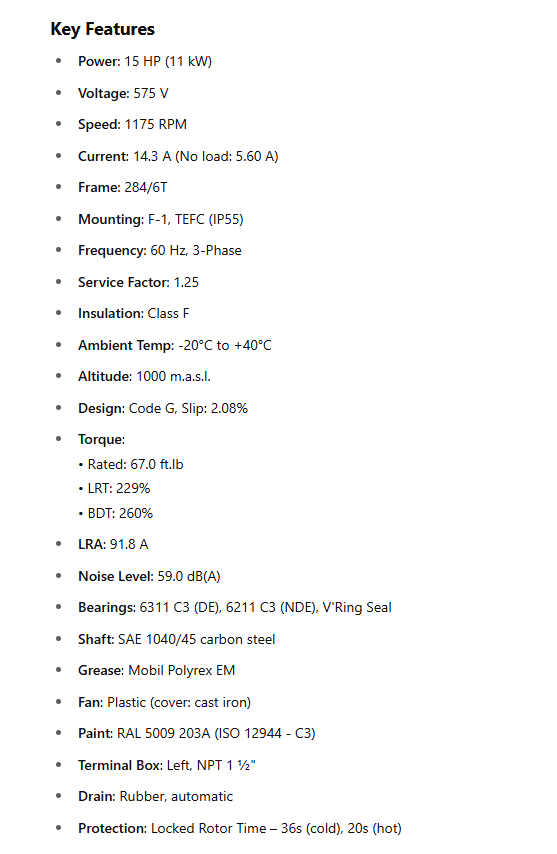 Bearings: 6311 C3 (DE), 6211 C3 (NDE), V'Ring Seal