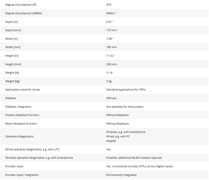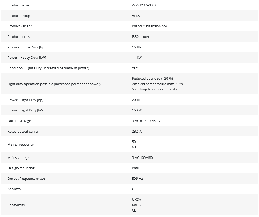 • Product Group / Series: VFDs, i550 protec (without extension box)