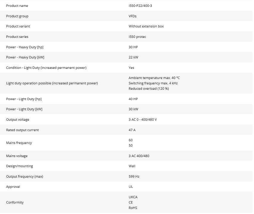 • Product Group / Series: VFDs, i550 protec (without extension box)