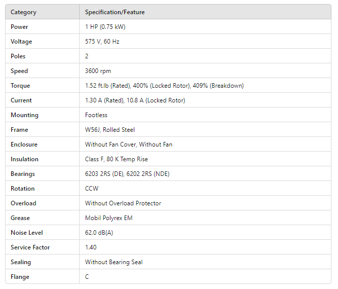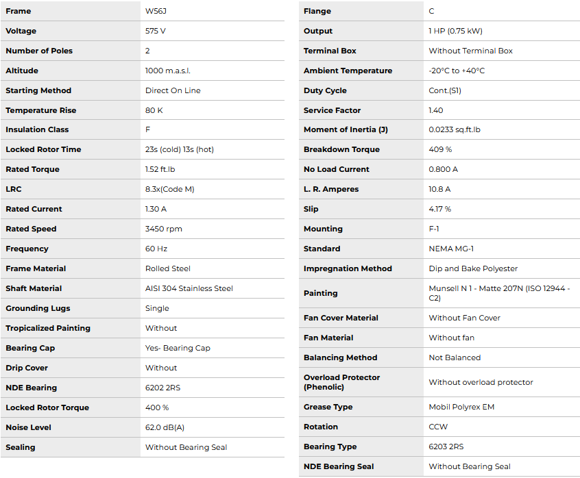 JO000502W01DOE, Rolled Steel Jet Pump - J type Premium Efficiency 1Hp 3450 Rpm 2P W56J 3Ph 575 V 60 Hz IC01 - ODP - Footless