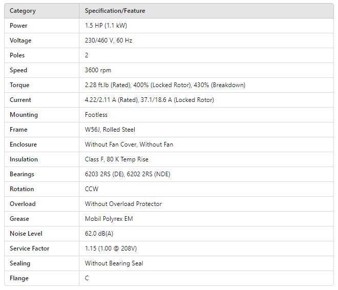 JO001402W01DOE, Rolled Steel Jet Pump - J type Premium Efficiency 1.5Hp 3450 Rpm 2P W56J 3Ph 230/460//190-220/380-415 V 60 Hz IC01 - ODP - Footless is backordered and will ship as soon as it is back in stock.