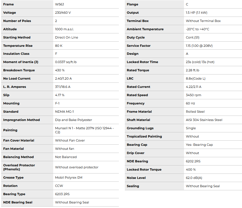 JO001402W01DOE, Rolled Steel Jet Pump - J type Premium Efficiency 1.5Hp 3450 Rpm 2P W56J 3Ph 230/460//190-220/380-415 V 60 Hz IC01 - ODP - Footless