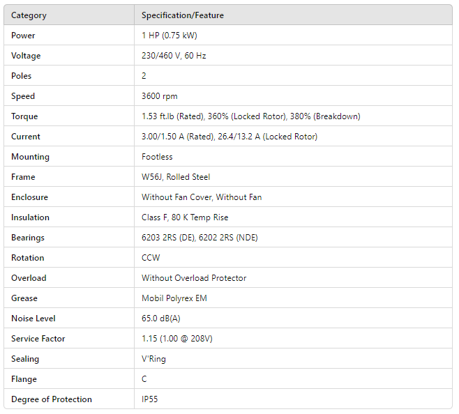 JT000402W01DOE, Rolled Steel Jet Pump - J type Premium Efficiency 1Hp 3435 Rpm 2P W56J 3Ph 230/460//190-220/380-415 V 60 Hz IC411 - TEFC - Footless is backordered and will ship as soon as it is back in stock.