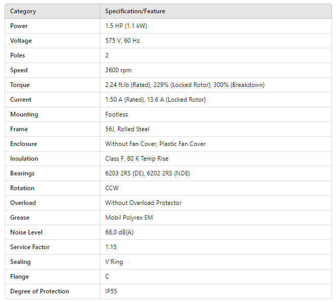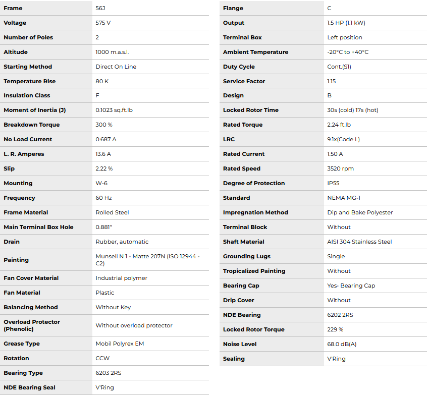 JT001502W01DOE, Rolled Steel Jet Pump - J type Premium Efficiency 1.5Hp 3520 Rpm 2P 56J 3Ph 575 V 60 Hz IC411 - TEFC - Footless