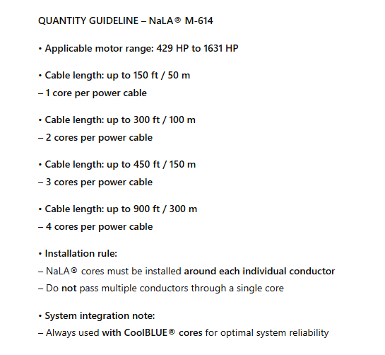 – NaLA® cores must be installed around each individual conductor