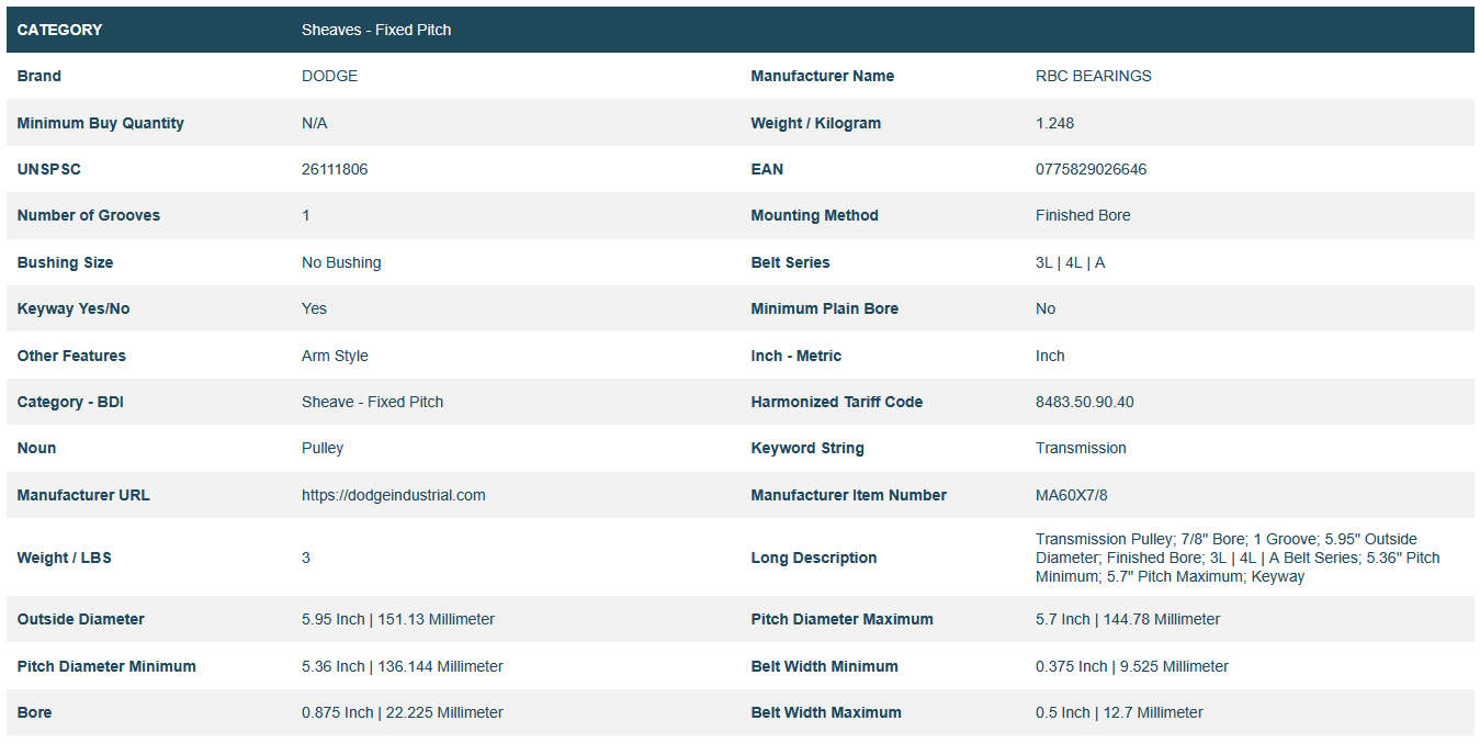 MA55X1, AK56-1, Transmission Pulley; 1" Bore; 1 Groove; 5.45" Outside Diameter; Finished Bore; 3L | 4L | A Belt Series; 4.86" Pitch Minimum; 5.2" Pitch Maximum; Keyway is backordered and will ship as soon as it is back in stock.