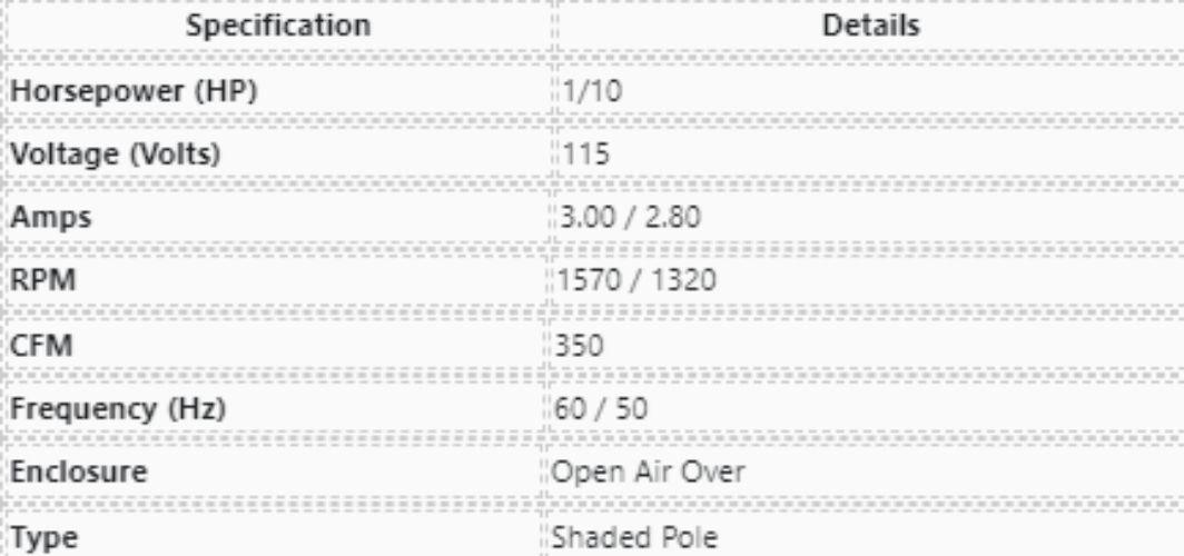 NBK 20277, NBK, 1/10 Hp, 1570 Rpm, 115 Volts, Phase 1, OAO, Blower,