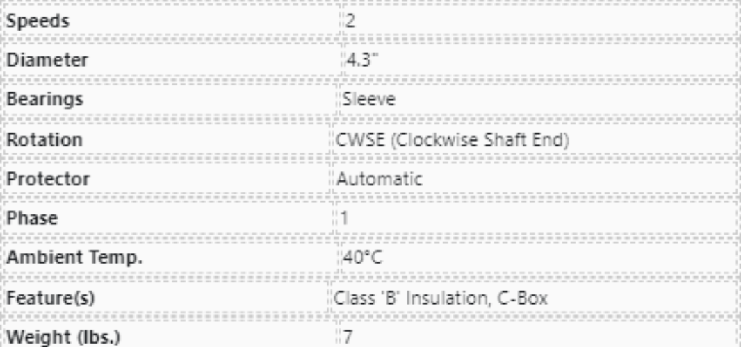 EQUIVALENT TO DAYTON, 1TDR7, FASCO 50769-D500