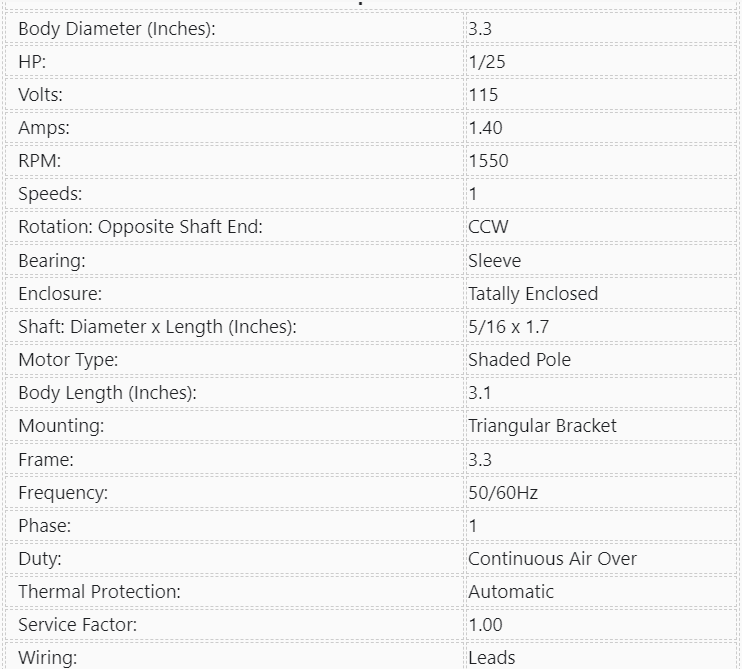 O6-R213, R213, ROTOM, 1/25 HP, 1550 RPM, 115V, 1.40A, Triangular Bracket