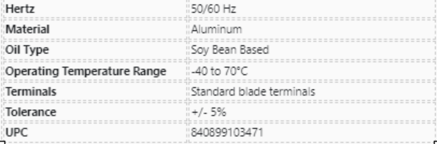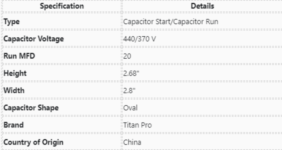 Packard, Titan, TOCF20, Run Capacitor, 20 uF, 440-370 VAC, Oval,