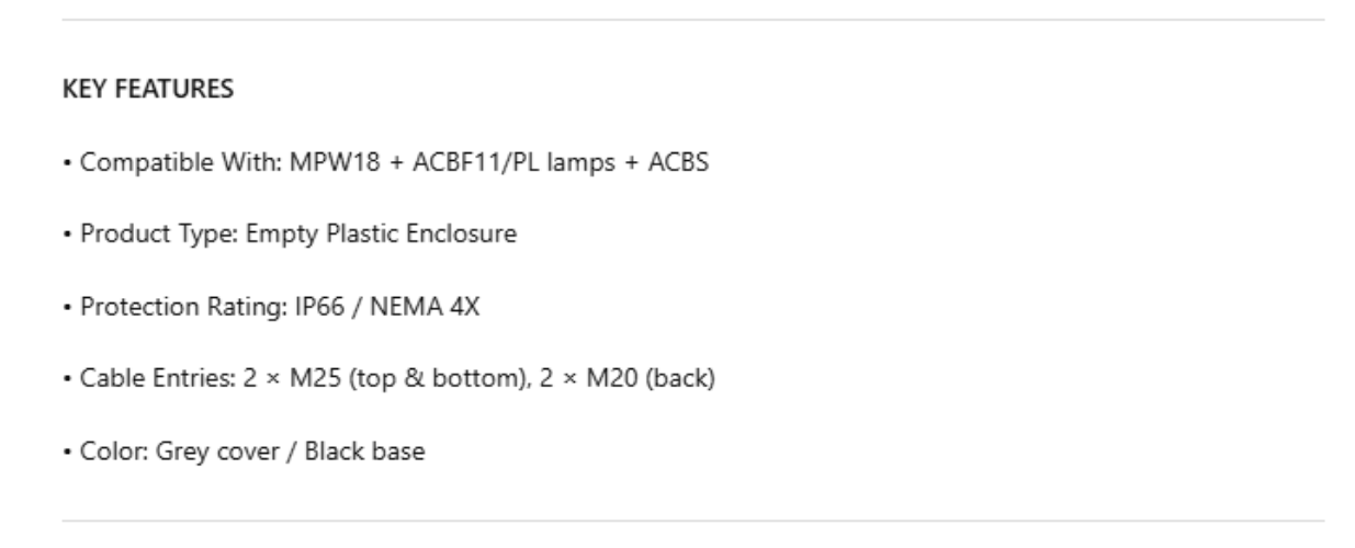 • Compatible With: MPW18 + ACBF11/PL lamps + ACBS