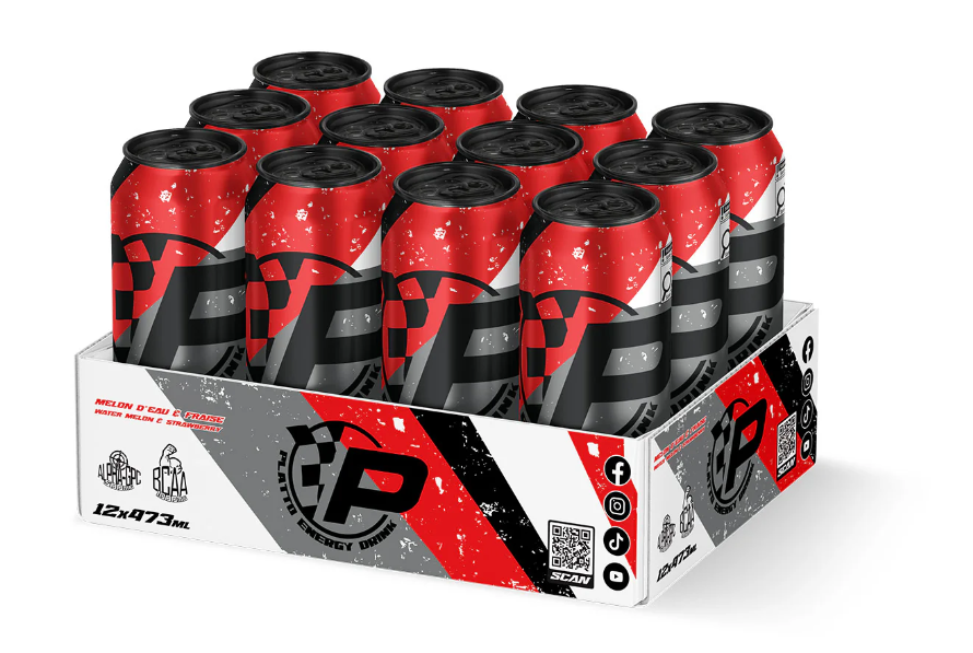 Platto Energy Drink, Water melon & Strawberry, Melon d'eau & Fraise, 12X473ML,Sucre,Sugar