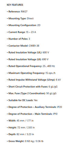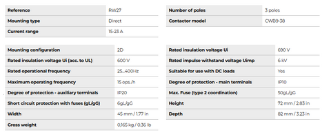RW27-2D3-U023, Overload Relay, 3/p, 15-23A, FOR CWB CONTACTOR