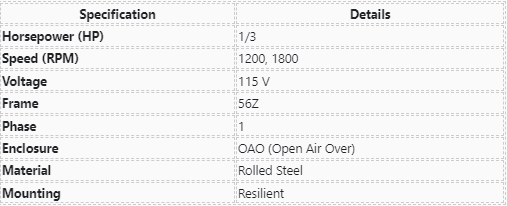 SGF2034V1, Century, 1/3Hp, 1200-1800 Rpm, 115 Volts, Frame: 56Z, OAO,
