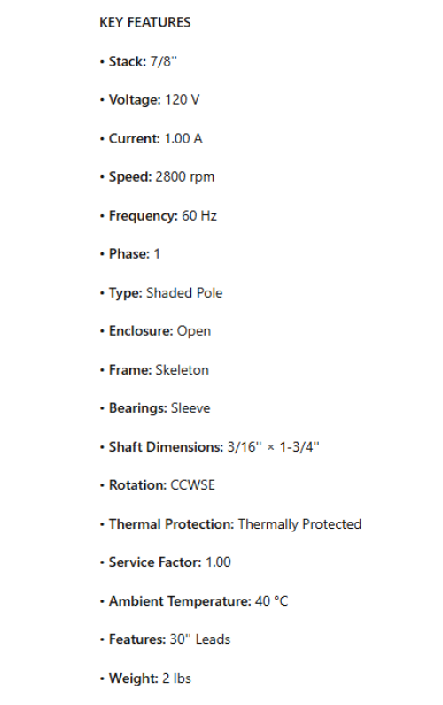 SS605, C-Frame Skeleton Motors, 7/8" Stack, 2800 RPM, 120V, 1Ph, 60Hz, CCWSE