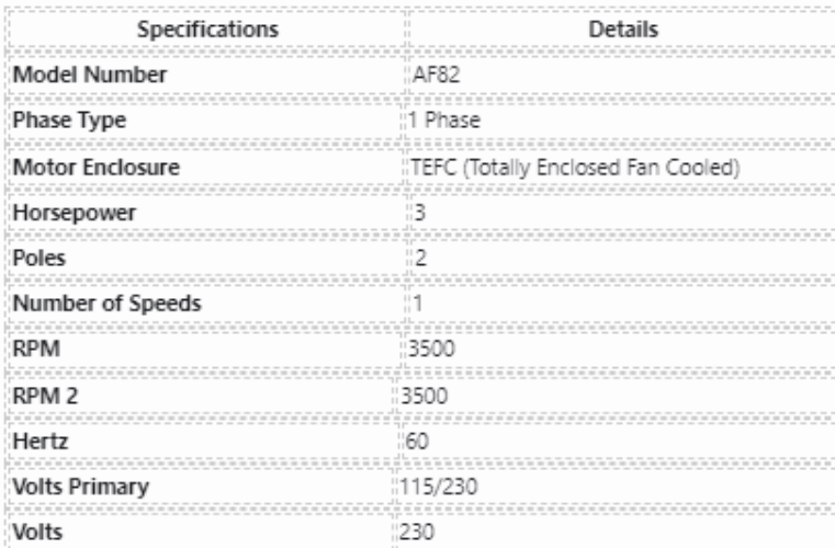 Phase: | 1 | Output HP: | 3 Hp |
