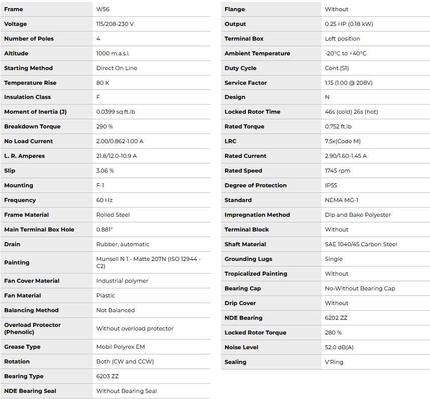 TF.25104W01DOE, Rolled Steel 0.25Hp 1745 Rpm 4P W56 1Ph 115/208-230 V 60 Hz IC411 - TEFC - Foot-mounted
