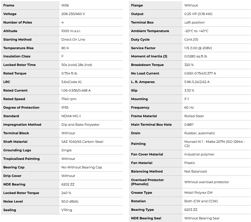 TF.25404W01DOE, Rolled Steel Premium Efficiency 0.25Hp 1740 Rpm 4P W56 3Ph 208-230/460//190-220/380-415 V 60 Hz IC411 - TEFC - Foot-mounted