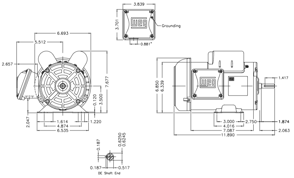 TF.50102W01DOE, Rolled Steel 0.5Hp 3510 Rpm 2P W56 1Ph 115/208-230 V 60 Hz IC411 - TEFC - Foot-mounted