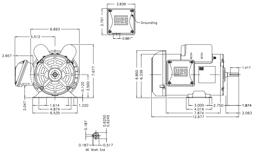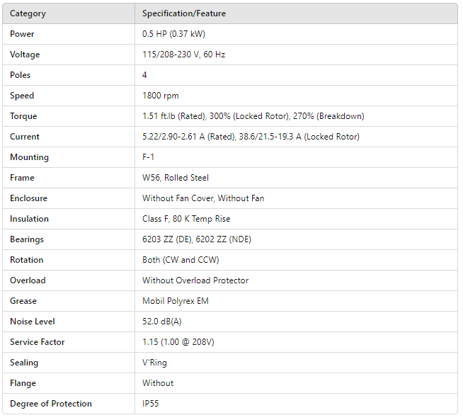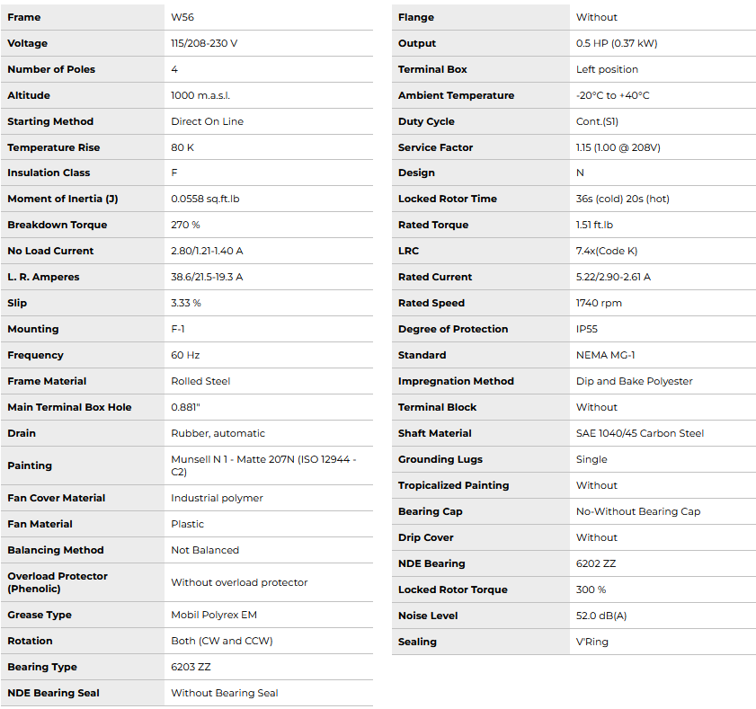 TF.50104W01DOE, Rolled Steel 0.5Hp 1740 Rpm 4P W56 1Ph 115/208-230 V 60 Hz IC411 - TEFC - Foot-mounted