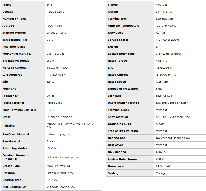 TF002104W01DOE, Rolled Steel 2Hp 1735 Rpm 4P 56H 1Ph 115/208-230 V 60 Hz IC411 - TEFC - Foot-mounted
