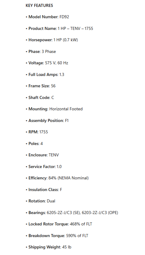 UN1T2GFC, ACCU-TORQ VECTOR DUTY, 1Hp, 1755 RPM, 575V, 3PH, 60Hz, TENV, Frame 56C, FD92 is backordered and will ship as soon as it is back in stock.