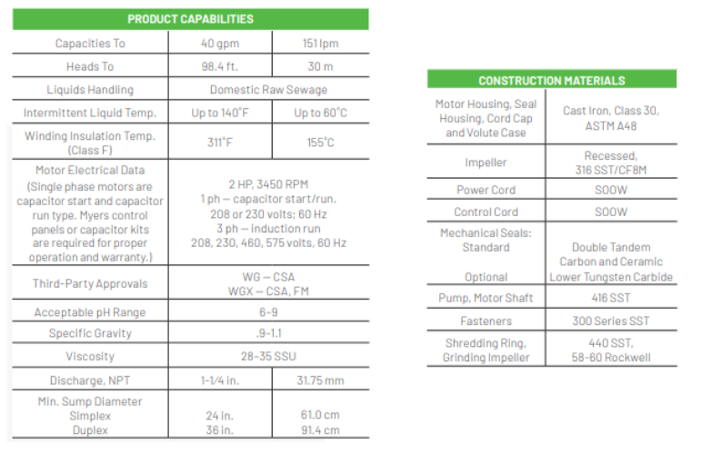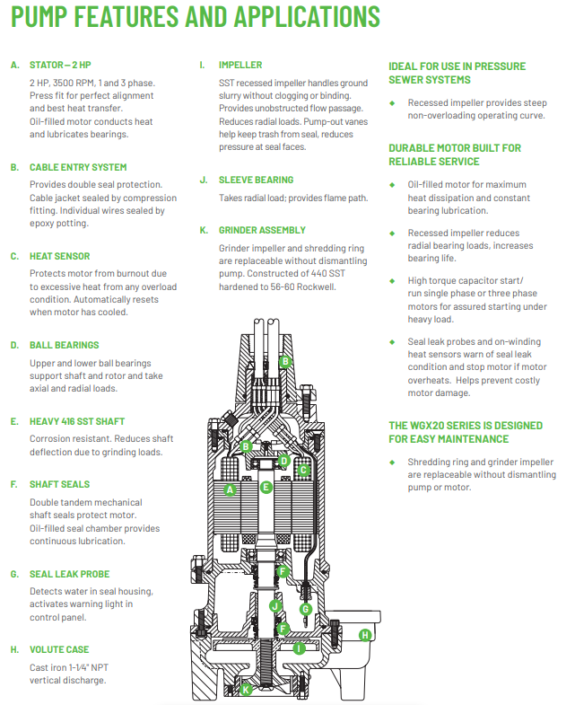 WGL20-53, Submersible Centrifugal Grinder Pump Myers, 2Hp , 575V , 3Ph , cord 20'