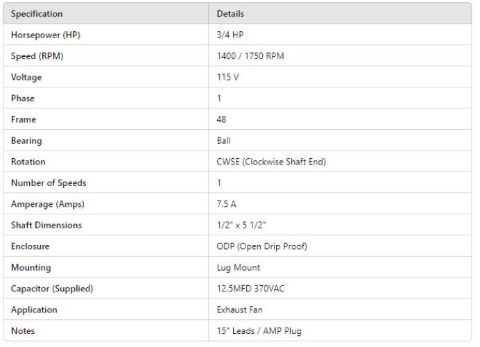 X63752, Xactone, 3/4Hp, 1400-1750 Rpm, 115V, Frame: 48, ODP, 63752-0,