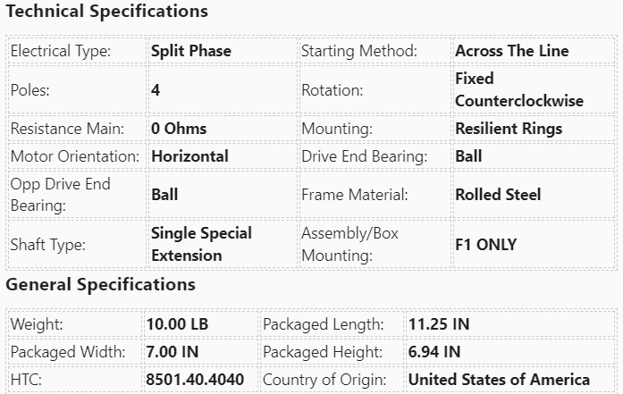 Electrical Type: | Split Phase | Starting Method: | Across The Line |