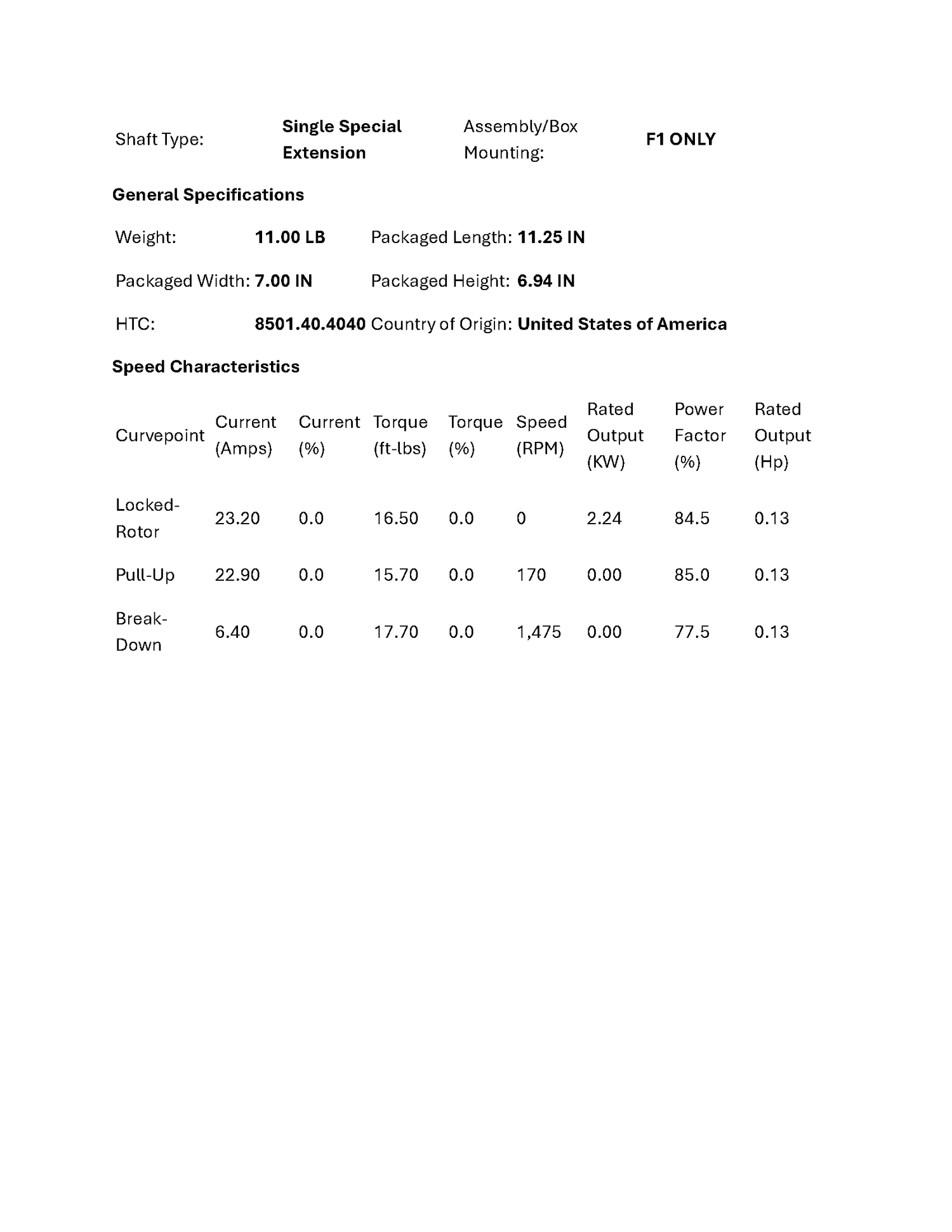 Shaft Type: | Single Special Extension | Assembly/Box Mounting: | F1 ONLY |
