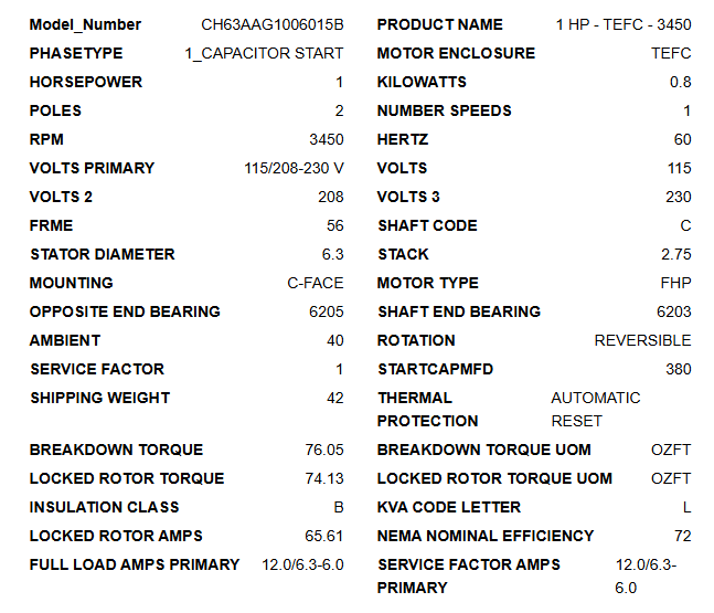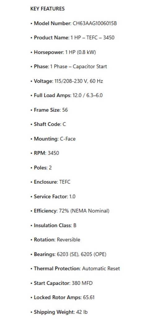 • Product Name: 1 HP – TEFC – 3450