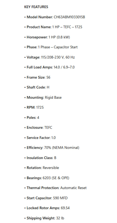XS1CA2JH, EXPLOSION PROOF, 1Hp, 1725 RPM, 115/208-230V, 1PH, 60Hz, TEFC, Frame 56H, IP54, CH63ABM1033015B is backordered and will ship as soon as it is back in stock.